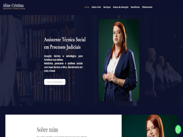 Landing Page profissional desenvolvida para Aline Cristina, assistente técnica social e perita judicial.